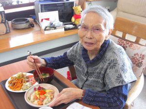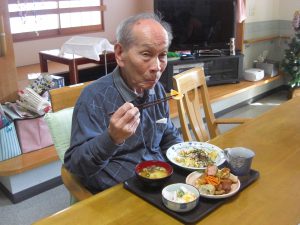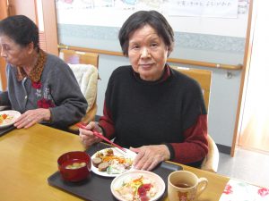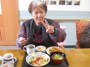 昼食に海鮮ちらしとオードブルをお出ししました。 皆さん「美味しい」残さず召し上がられました。