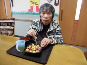 坂戸より 節分を行いました。 ツイート 2月3日(土)1階で節分を行いました。 鬼の絵に向かって新聞紙を丸めた豆を投げ「鬼は外!福は内!」と福が来るよう願いました。 お昼は散らす寿司の出前をとり召し上がって頂きました。 皆さん満足され楽しい節分になりました。 最初のいいね!ボタンをどうぞ。 いいね! いいね!を取り消す 2018年2月7日