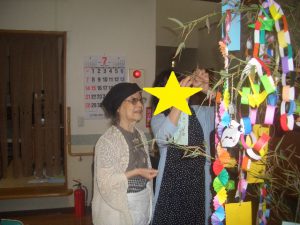 所沢より 七夕 ツイート 7月7日、皆様で七夕の行事を行いました。 事前に笹の葉を用意して、入居者様やスタッフで七夕の飾りを作りました。 願い事を書いた短冊をつるして その後はおやつであんみつを召し上がりました。 1人の方がいいね!と言っています いいね! いいね!を取り消す 2019年7月20日