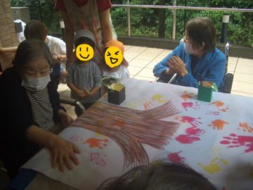 掌に絵具を塗って、ペタペタと皆さん楽しそうに作品作りに参加していました!