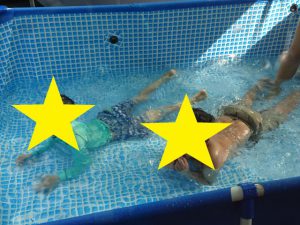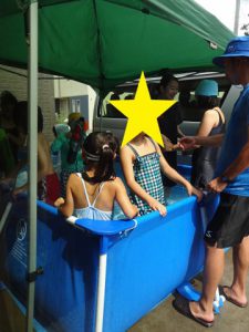 夏休みの活動~水遊び~ 今年もきずなの駐車場にプールを出して水遊びをしました♪ 水鉄砲やバケツで水を掛け合って遊んだり、ゴーグル持参で泳ぎを披露してくれたりと楽しい時間を過ごしました。 排水してどんどん水が少なくなっても、最後まで泳いでいました! 2018年9月19日