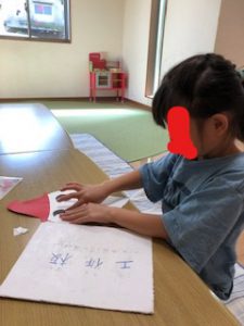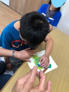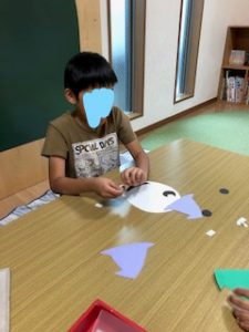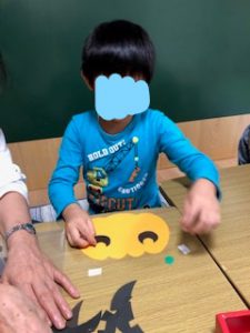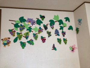 10月の制作(*´ω`*) 10月に入りやっと秋らしくなってきましたね 今月は、制作を2つ行いました まずは、ブドウ作り 画用紙に絵具を スタンピングして、 ハサミで紙を切り、 上手に作る事が出来ましたー どれも美味しそうです 2つ目は、ハロウィンという事で、 お化けとかぼちゃのお化けを作りました ハサミでチョキチョキ のりでぺたぺた。 みんな楽しそうに作っていました かっこいいお面も出来ました たくさんのお化けに かぼちゃが出来ましたー ハロウィン当日も楽しみです 2019年11月12日
