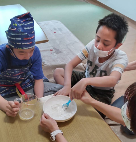粉を混ぜたり、生地を伸ばしたり一生懸命手伝ってくれました![]()