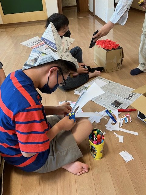 ダンボールにそれぞれ絵や飾り付けをして![]()