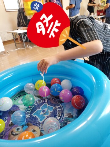 ヨーヨー釣り、射的、かき氷、ポップコーン、わたあめを楽しんでいました