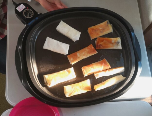 最後に、包み終わった春巻きを、薄く油をひいたホットプレートで焼きます。