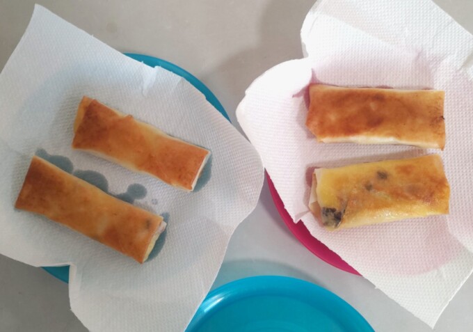具が多かったり、少なかったり、太っちょだったり、細身だったり。包み方が曲がったり、ゆがんだり、しわがよったり。誰が作った春巻きなのかが、分かるので楽しめました。