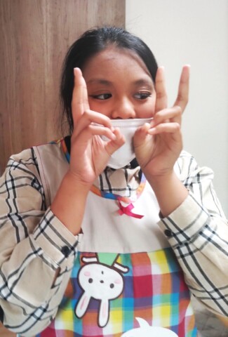 ナイフを使う作業なので、スタッフが手を添えながら、![]()