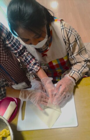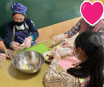今日の土曜日は、「サツマイモと栗のおやつ春巻き」作りに挑戦しました。