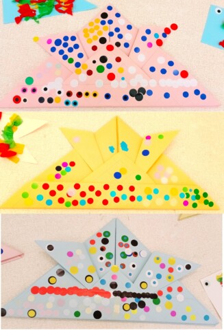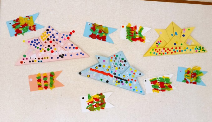 かぶとが出来上がったら、丸シールでデコレーション![]()