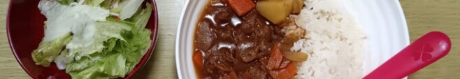 🍛「ビーフシチュー」は定番通りに、牛肉、タマネギ、ニンジン、ジャガイモを入れました。
