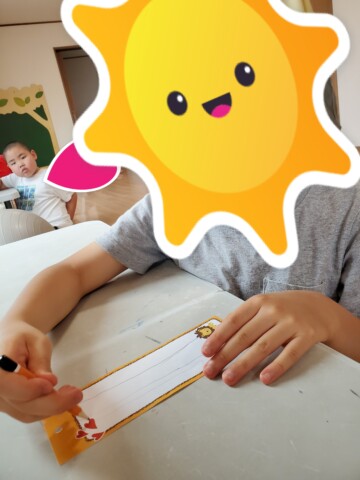 みんなで、短冊を作りました。