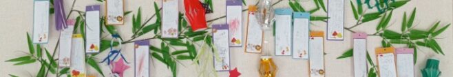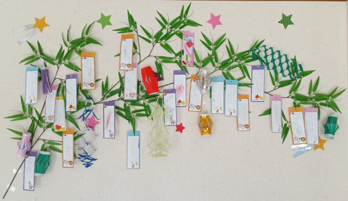たくさんの短冊が笹の葉に飾られました。