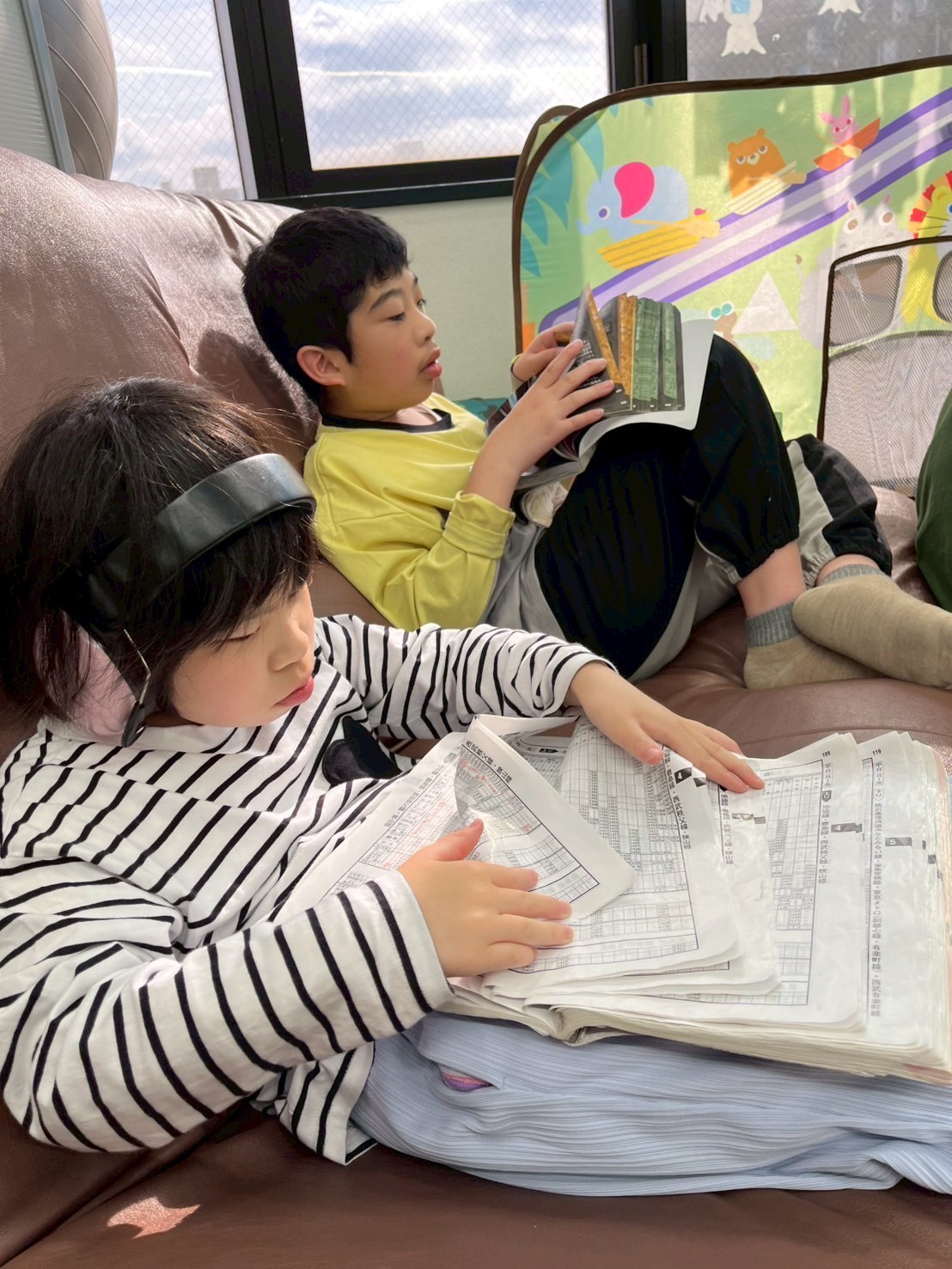 個別に課題や学習プリント📚やったり、お絵描きにのりで紙にペタペタ貼ったりしています📚🖍️