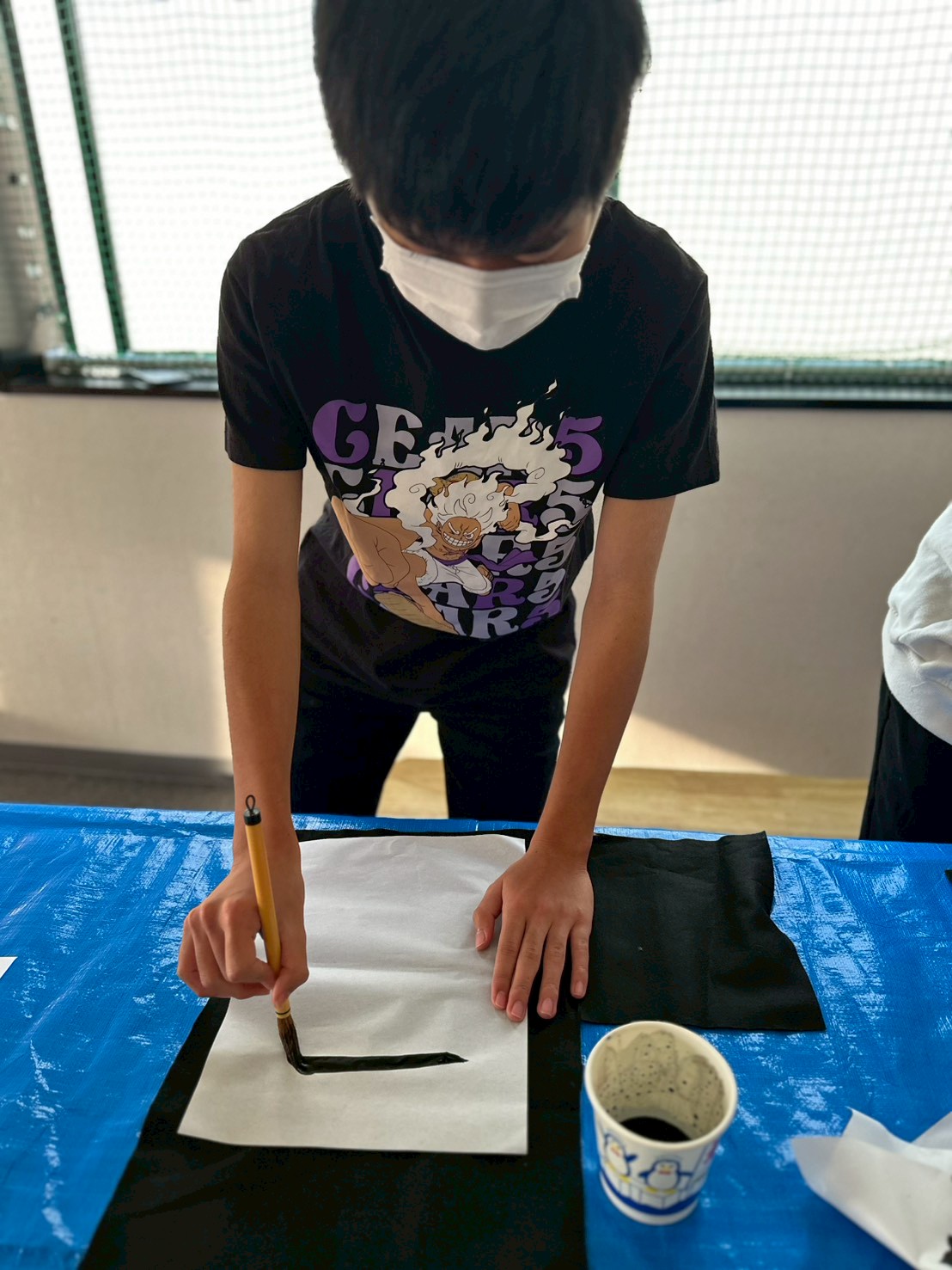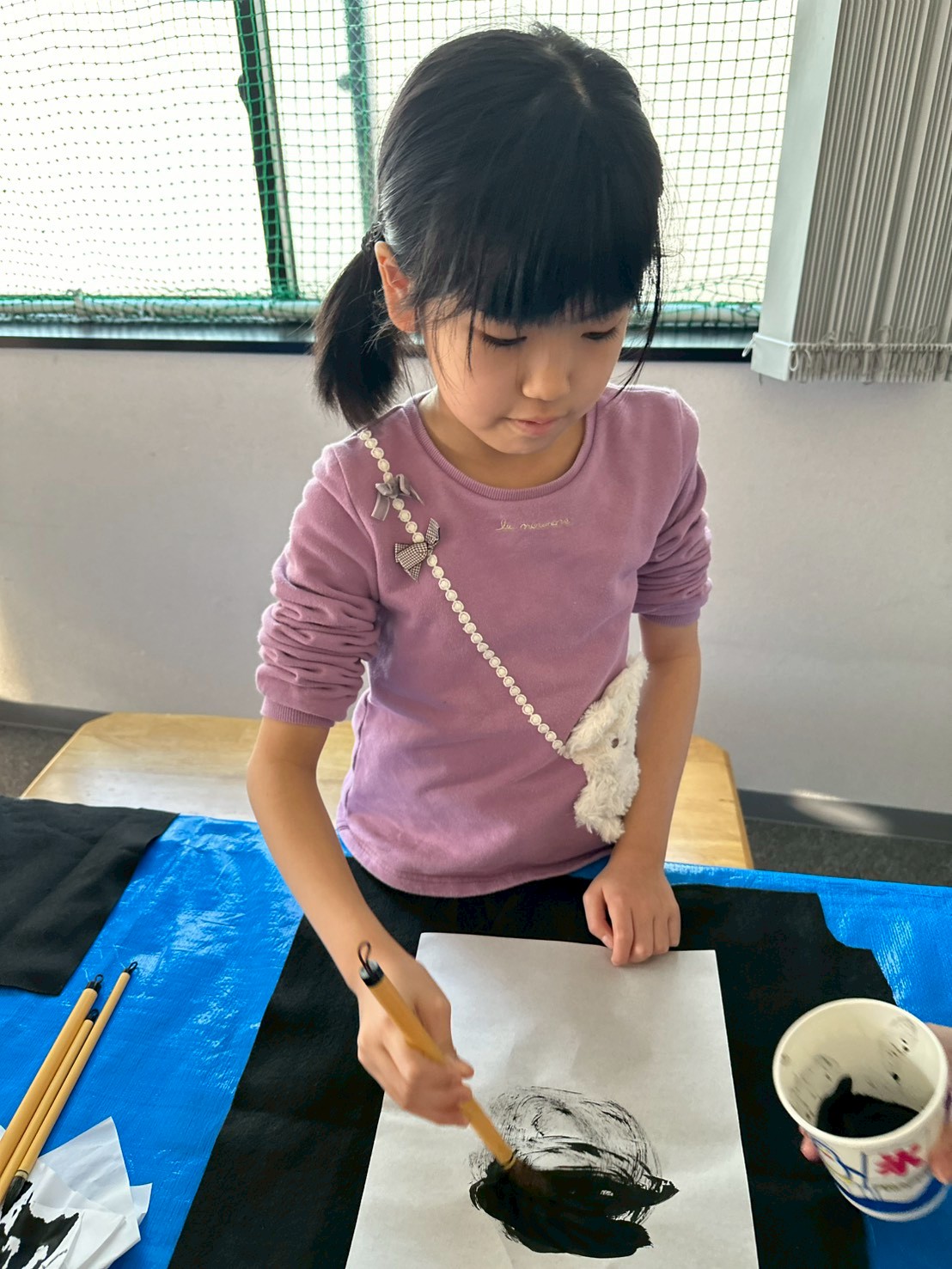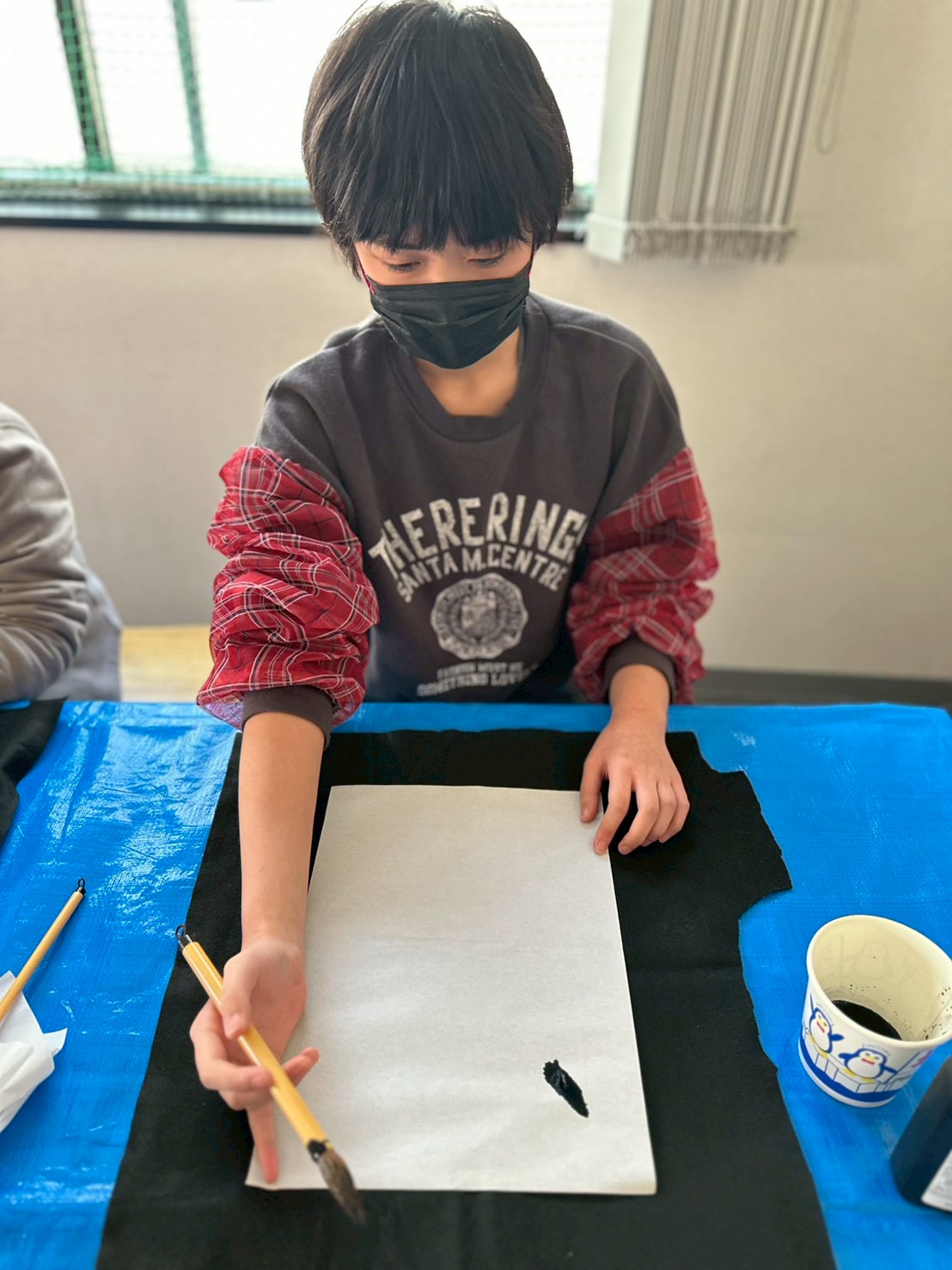 書初め大会では、お気に入りの文字を力強く書き上げました!
