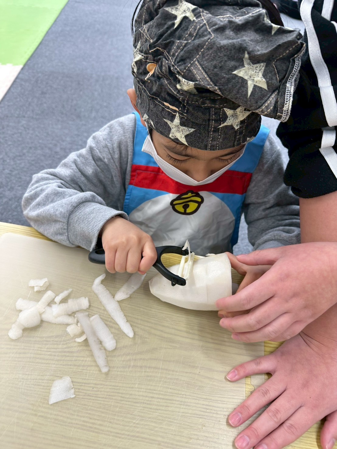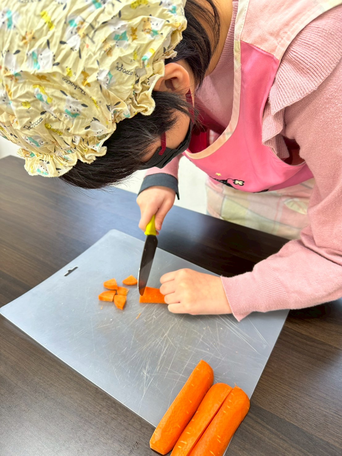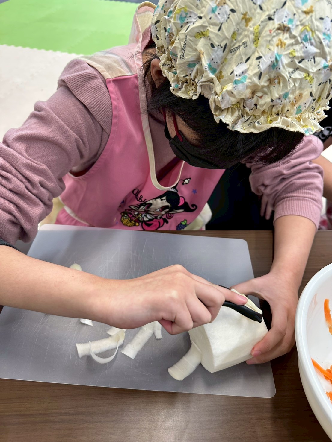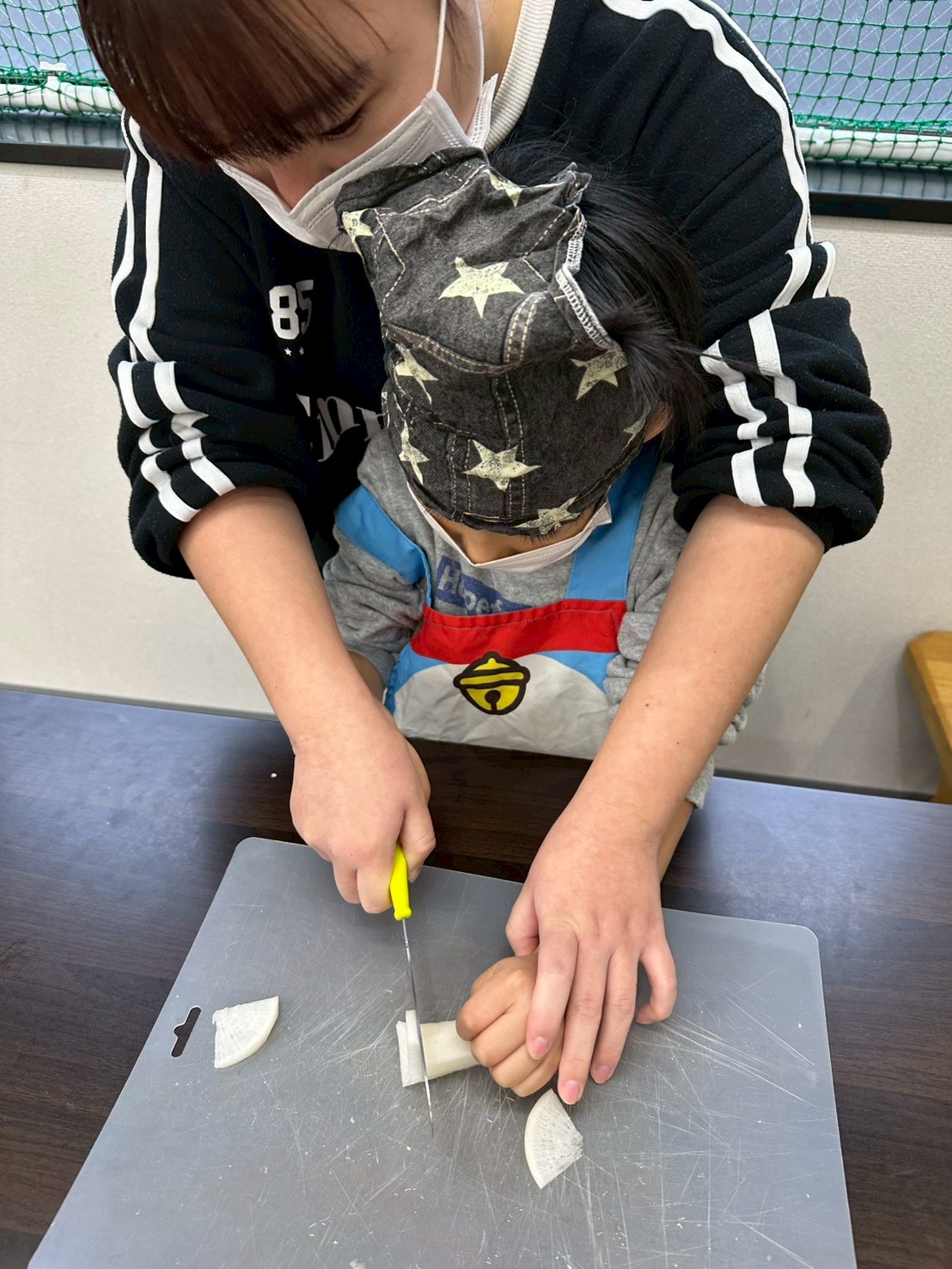 調理活動の豚汁とおにぎり作りでも、みんなで力を合わせてワクワクする時間を過ごします。