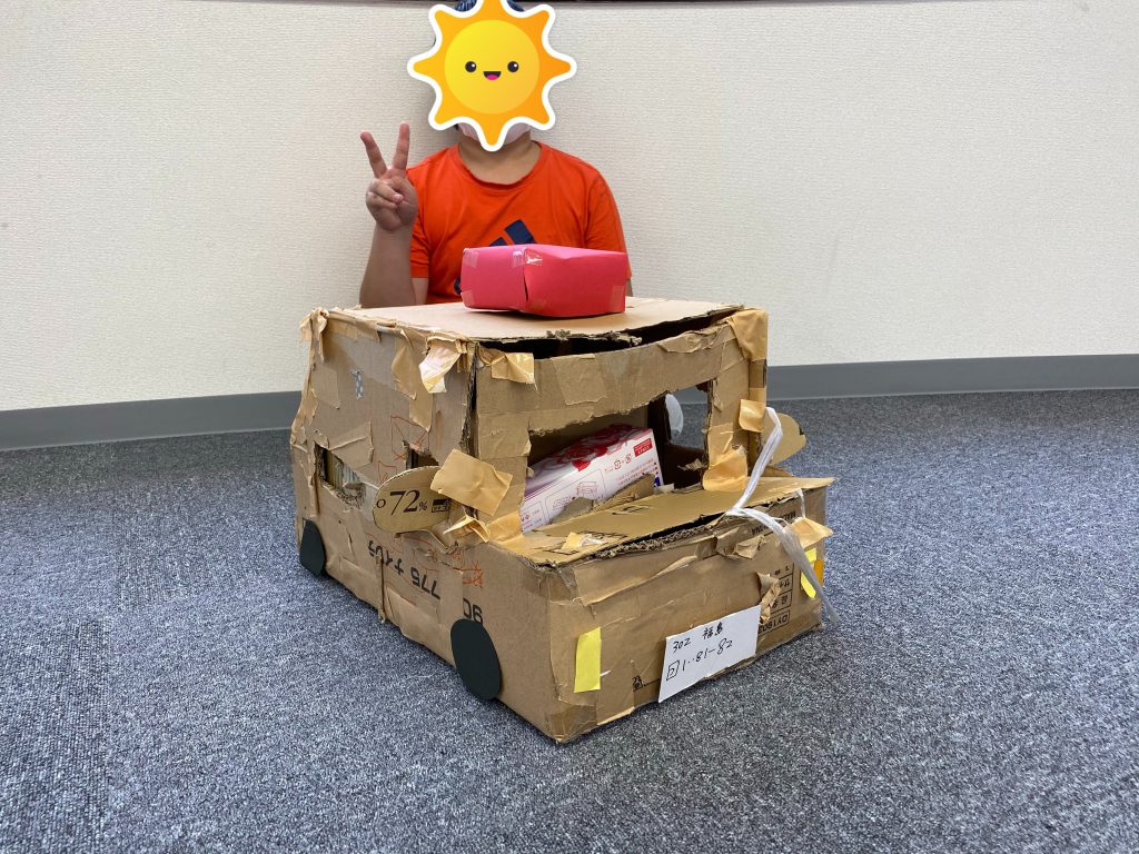 上の作品は、ダンボールで車を作った時のお写真です!