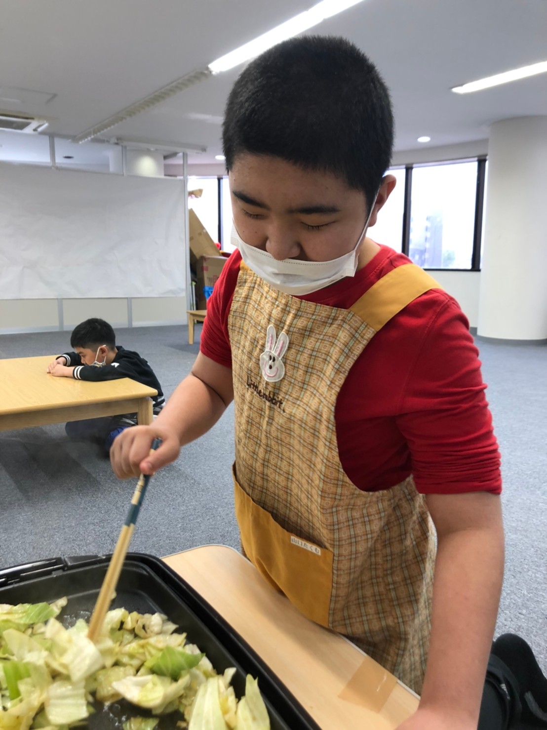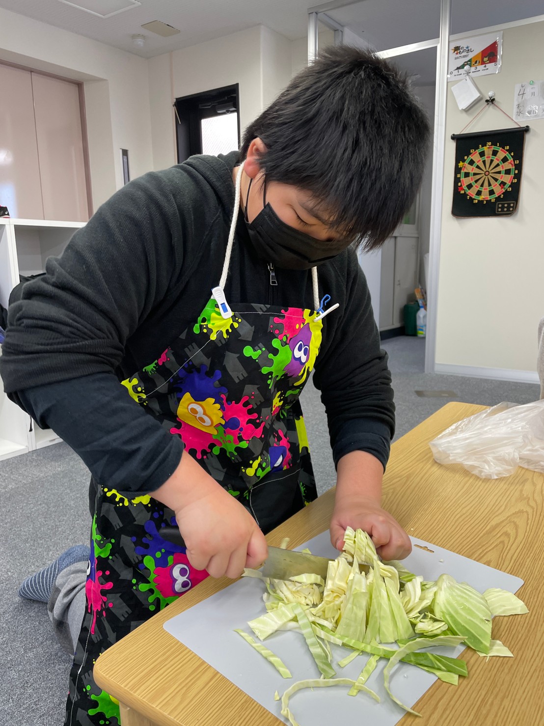 まずは付け合わせのキャベツをカット!ザックザックみんなテキパキと切ってくれました!