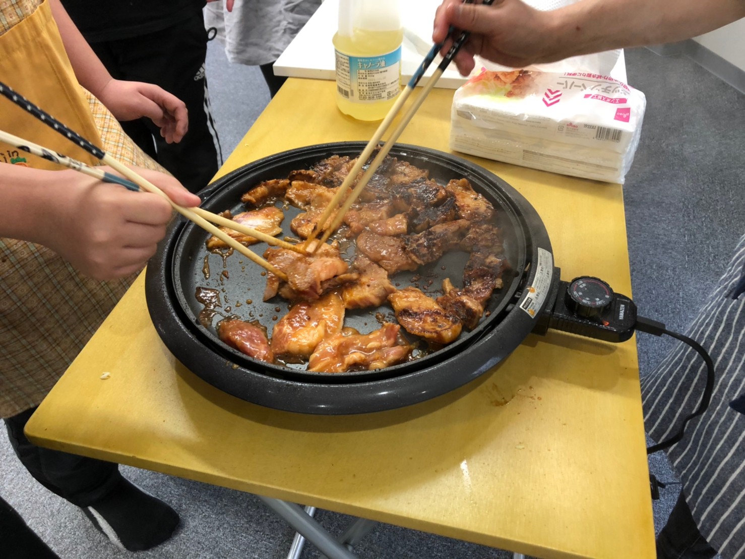 お次はお肉!ホットプレートで焦げ目がつくまでジュージュー焼きました!