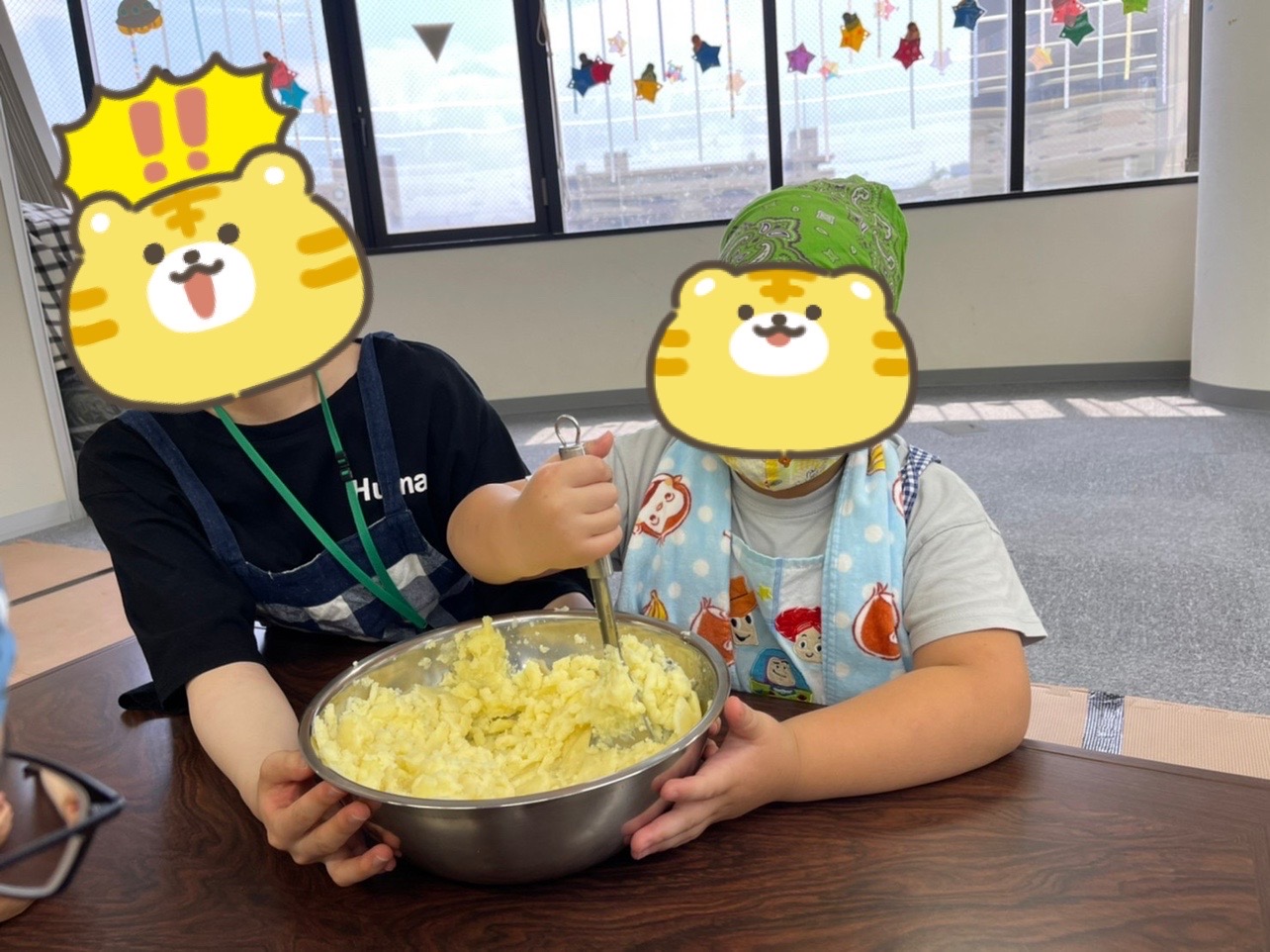 午前中はおいもの皮むきをしたりタレを作ったり、午後はおいもを潰して片栗粉を混ぜ、みんなで揚げ焼きにしました!