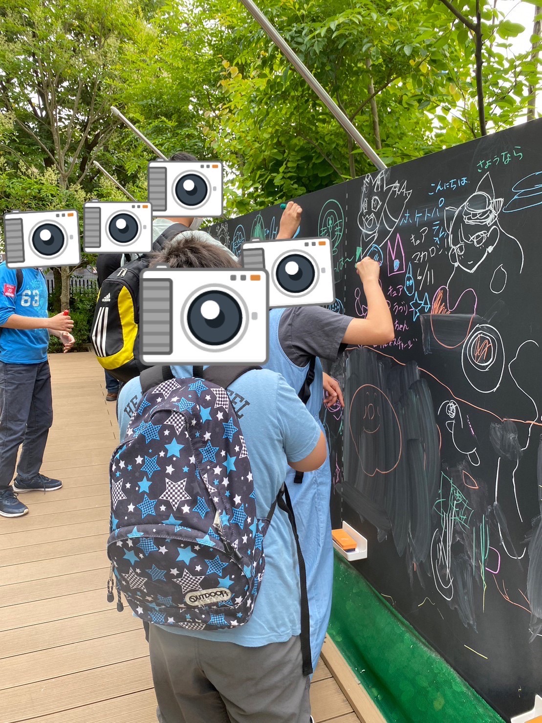また、お庭には自由にお絵かきできるおーーきな黒板があって、子どもたちは思い思いの絵を描いていましたよ♪