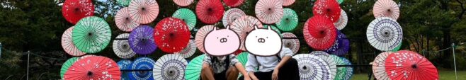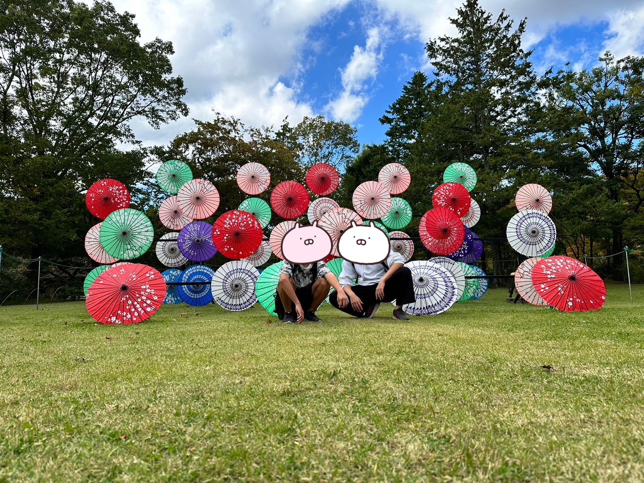 途中、日本庭園で和傘のアートが展示されたりもしていて、立ち寄って記念写真を撮ったりもしました。