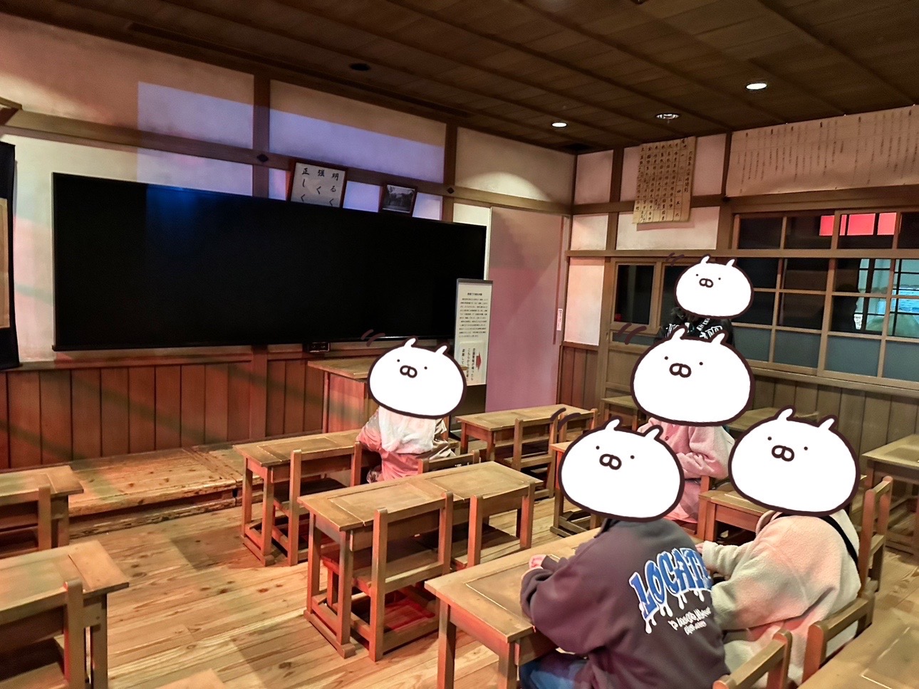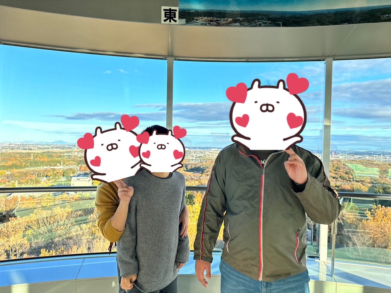 防空壕や昔の住宅、学校の再現された空間を見学した後、みんなで展望台に上りました。