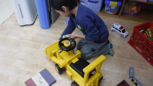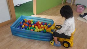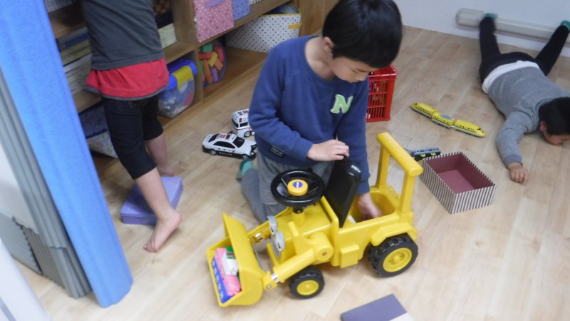 室内遊び~ブルトーザー~ 去年の12月。トイスにやってきました。 サンタさんからのプレゼント。 トイスで大人気「ブルドーザー」の紹介です♪ 普通に乗って走らせるのはもちろん・・ おもちゃを入れるなどの収納もたくさん! ほかにもなんと! ボールのお片付けにも大活躍!! 人気者なので順番待ちが出ることもあります。 順番を守って みんなで大事に遊ぼうね❤ 2018年2月17日