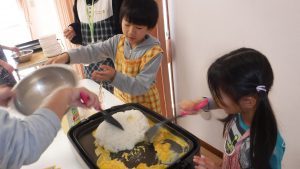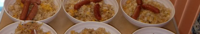 チャーハン・たこ焼き・カレー・豚汁とおにぎり など。