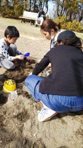 春休み~外遊び~ いろんな公園などお外でも遊びました。 「アイスクリームはいかが?」 みんなでバトミントン。 ブランコ さくらに手が届くかな? ブランコの順番待ちをしています。 長いローラー滑り台だね♪ お砂場遊び。 「電車見えるかな?」 かけっこしてゴール!! 春休みもみんな元気でした。 2018年5月7日