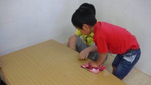 ひとりでできるもん♪ お友達と遊ぶのも楽しいですが 集中して何かをすることも楽しいですよね♪ お絵かきボードにスタンプ。 ビーズ通し。 おやつ前にテーブル拭きをお手伝いしてくれました。 あいうえおパズル 頑張ります! お兄ちゃんと一緒にままごと♪ 2018年6月7日