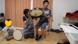 みんなで打楽器を演奏します。