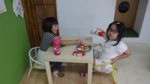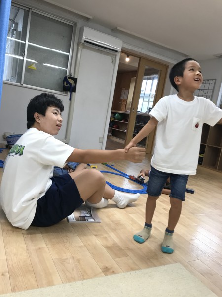 誰かと一緒に・・ トイスにはいろいろな人がいて いろいろなかかわりがあります。 車に乗ってお友達のシートベルトをしてくれるお友達がいます。 年の離れた子供たちも一緒に遊びます。 仲のいいお友達と女子会? 遊ぼうよー!! 男の子はこんな遊びをしていました。 けがをしないようにスタッフが守ります! みんなでかけっこもします。 これからもみんなで仲良く遊ぼうね♪ 2018年11月29日