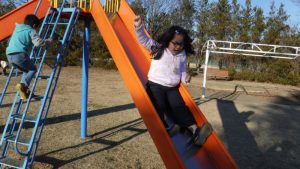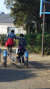 冬休み~公園~ 良く晴れた日 公園に行ってきました♪ 「行くよ~」 地球儀型のジャングルジムです。 一番上まで登れたよ✈ 丸太の橋 無事渡りきることができました♪ 寒くてもみんな元気に遊びました♪ 2019年2月19日