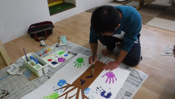 1月の製作☆ 1月製作 ”トイスツリー” 子ども達の手形で、カラフルで可愛い木が完成しました! ぺったーん!! 手形が苦手な子供たちは木に“トイス”と書いたり、鉛筆で手形を書いて塗ったり(^^♪ みんなで完成させたトイスツリーはとっても素敵なものになりました💛 トイスのガラス窓に飾ってあります(#^^#) 今年度の製作もあと2回! なにをやろうか~(^^)/ 子ども達が積極的に楽しめる製作をやっていきたいなぁ…と日々考えるスタッフ達です♪ 2020年2月17日