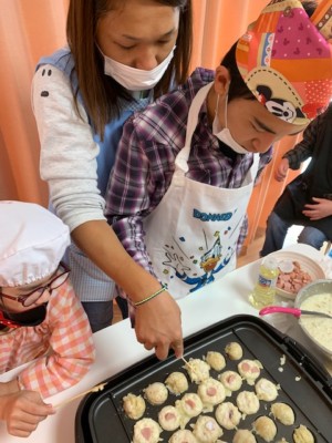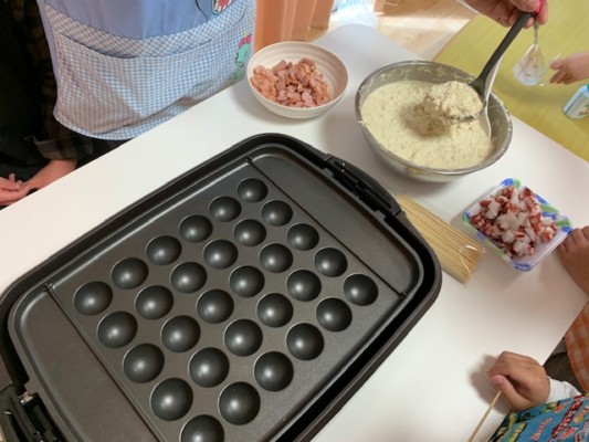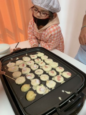 たこ焼きパーティー😋 10月24日(土) たこ焼きパーティーを開催いたしました~😆 ウインナーを切って❕ キャベツは袋で売っている千切りキャベツを買っちゃって時短です😝 粉と水を混ぜ混ぜ~😃 天かすとキャベツを投入したら焼きまーす🎵 今回の中身は… たことウインナーです😍 ひっくり返すのもとても上手でまんまるたこ焼きの完成💛 とってもおいしく出来上がりました🤩 子ども達の大好きなウインナーはそのまま食べる用にも焼きました😎 唐揚げも用意して…🍴 みんない~っぱい食べました😝 楽しいタコパになったね😍 2020年10月26日