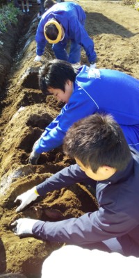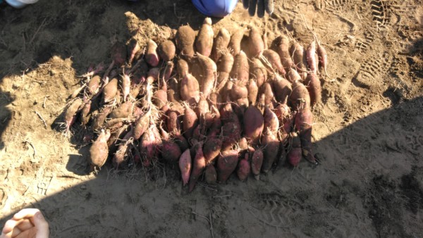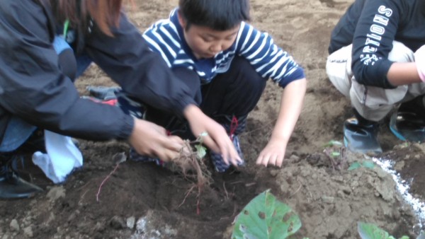 スコップはお芋を傷つけてしまう為、使わずに手で掘っていきます。
