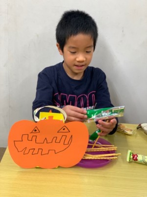 今年もハロウィンに向けて10月中旬頃からお菓子バックの製作を行いました。