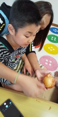 玉ねぎチーム、涙目になりながら頑張りました(;O;)