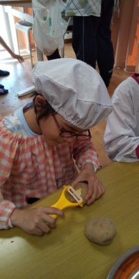 玉ねぎチーム、にんじんチーム、じゃがいもチームに分かれて調理スタート😆