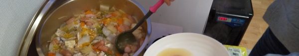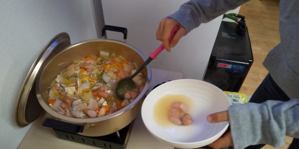 みんなでつついて食べるのではなく、お玉で取り分けるスタイルで行いました。