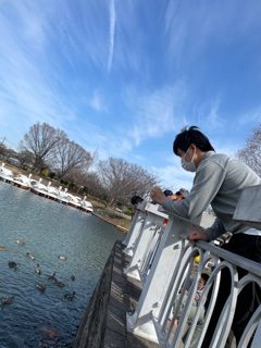 池のカモに餌をあげてみたりも(^^)