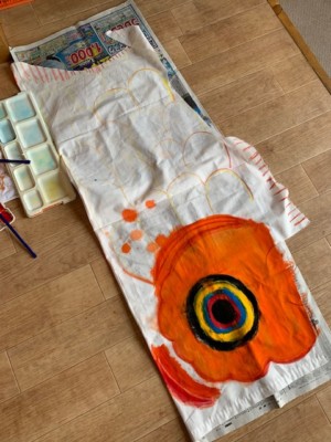 絵の具の水分が布にしみ込んでいる為、予想より重くなったのは計算外🤣