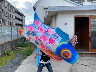 結構な風が吹かないと泳がないので、子ども達が、走って泳がせてくれました~🤣(笑)