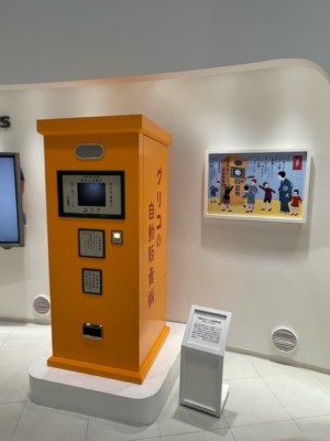 昔は、この自販機でグリコという初代のお菓子であるキャラメルを購入するとショートムービーが見られたとか😆