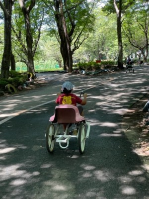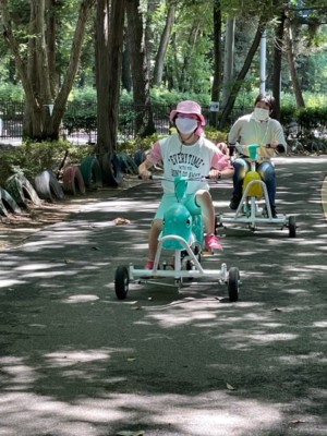 みんなでサイクリング🚴 色んな変形自転車に乗れるここ、ご存知でしょうか😍 「川本サングリーンパーク」という公園なんです❤ みんな好きな自転車に乗り、30分間サイクリング🚴(笑) もちろん乗り換えもありです♡ 暑い中だったけど、みんな安全運転で楽しめました✨ 自転車の後は、ミニ電車にも乗りました✨ 1週おまけしてくれて、2週することが出来ました(^^)/ 2022年9月7日