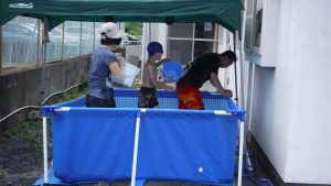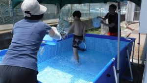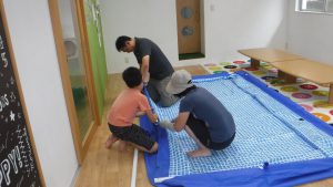 プール開き トイスで迎える初めての夏休みに備え、プールを組み立ててみました。 とても大きいプールです。 待ちきれず、一足早く遊んでしまいました。 トイスの子ども達、楽しんでくれるといいな… 2017年7月13日