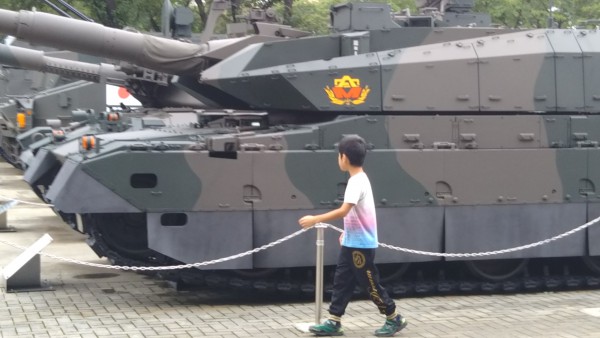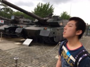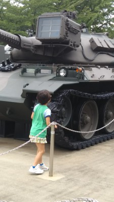 外には戦車やヘリコプター、装甲車などの展示があり、大きさに驚いていました。