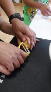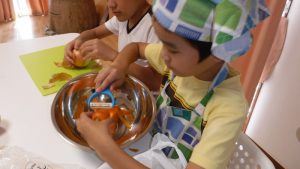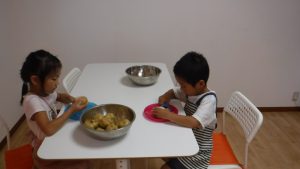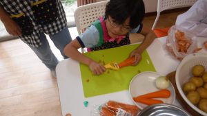 みんなでお昼ご飯を作ろう! 夏休みのトイスでは みんなでおひるごはんをつくりました。 今年は、カレー、チャーハン、ハヤシライスに挑戦!! トイスには玉ねぎの皮むき名人が沢山います! じゃがいもや人参の皮むきもピーラーで上手にむきます! 時には、卵を割ったりといたり みんなで協力しおいしいお昼ご飯作りができました★ 自分たちで作り、みんなで食べる料理、 子どもたちも沢山お替りをしてくれまた一味違うお昼ご飯となりました! 長期休みにまた、挑戦したいと思います! 2017年9月14日