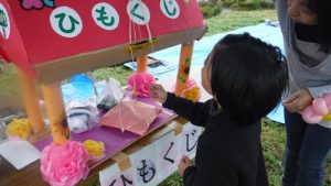 暖家まつり 今にも雨が降り出しそうな中、系列の高齢者施設のおまつりに行ってきました。 ストラックアウトに挑戦!景品が欲しくて何度も挑んでいました。 ひもくじの景品は・・・ 双眼鏡でした。「大きく見えるよ」と嬉しそうでした。 パン喰い競争にも参加しました。 無料でいろいろな体験への参加ができました!焼きそば、フランクフルトもいただき「来年も行きたいな~」とこども達・・・雨にも降られず楽しめた様で、よかったです!! 2017年11月16日